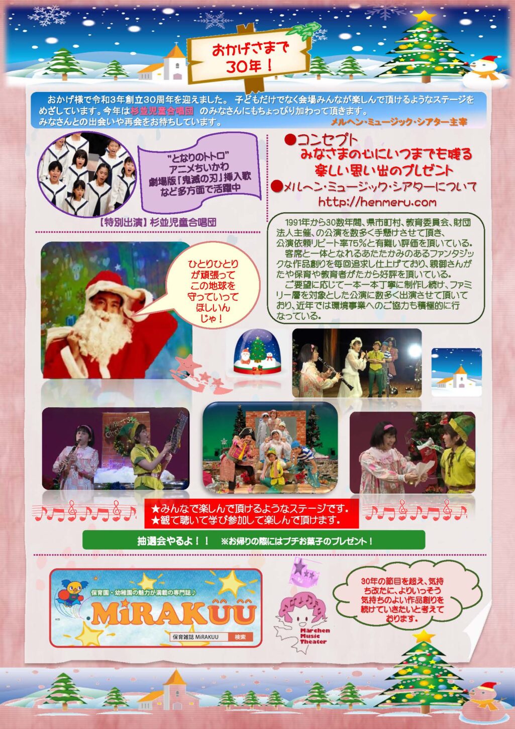 【三鷹市】家族で楽しむクリスマス!メルヘン・ミュージック・シアター『サンタからのメッセージ』12月25日開催