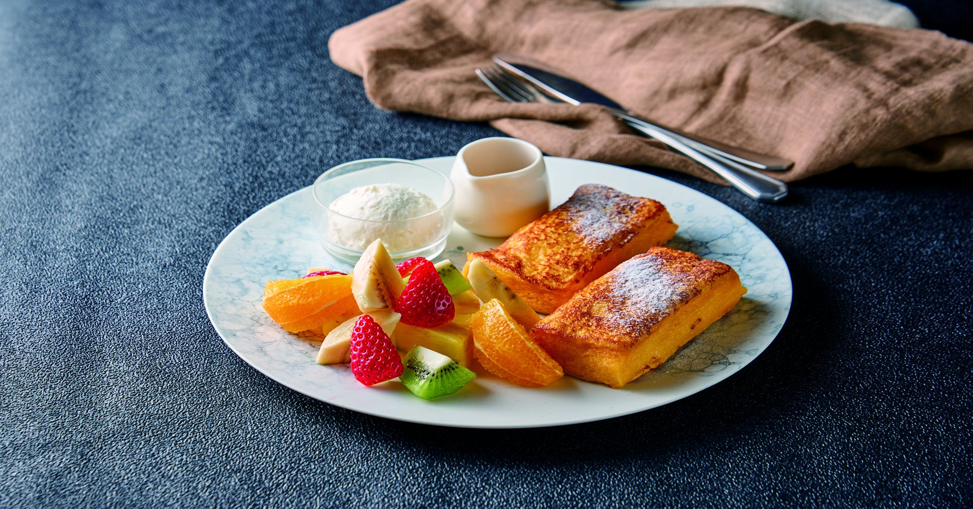 ご注文ごとに焼きたてをご提供している「フレンチトースト」は、自家焼成パンを厚くスライスし、卵とフレッシュミルクをたっぷり染みこませ、ふんわり焼き上げる自慢のデザートです。