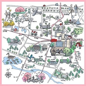 ■販売内容:立川の街並みを可愛らしくデザインしたイラストがプリントされたハンカチを、開業25周年を記念して販売いたします。
